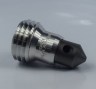 These tungsten carbide 45 degree angle nozzles are useful tool to have in your tool box when you need to blast clean in resricted spaces. This 45 degree angle forward shoooting nozzle is a useful alternative when a standard venturi straight shooting nozzle can't be used to blast clean e.g. behind angle irons on bridge work. These carbide angle nozzle are available with 3 different exit port configurations single exit, double exit of triple exit and a choice of bore sizes from 1/8" to 1/2" They are fitted with aluminum, industry standard coarse (2"/ 50mm) threads. Made from Tungsten carbide this tough angle nozzle will hold up well in tough site conditions. Everblast quality nozzles are available from stock from our facility in Crystal Lake illinois.
